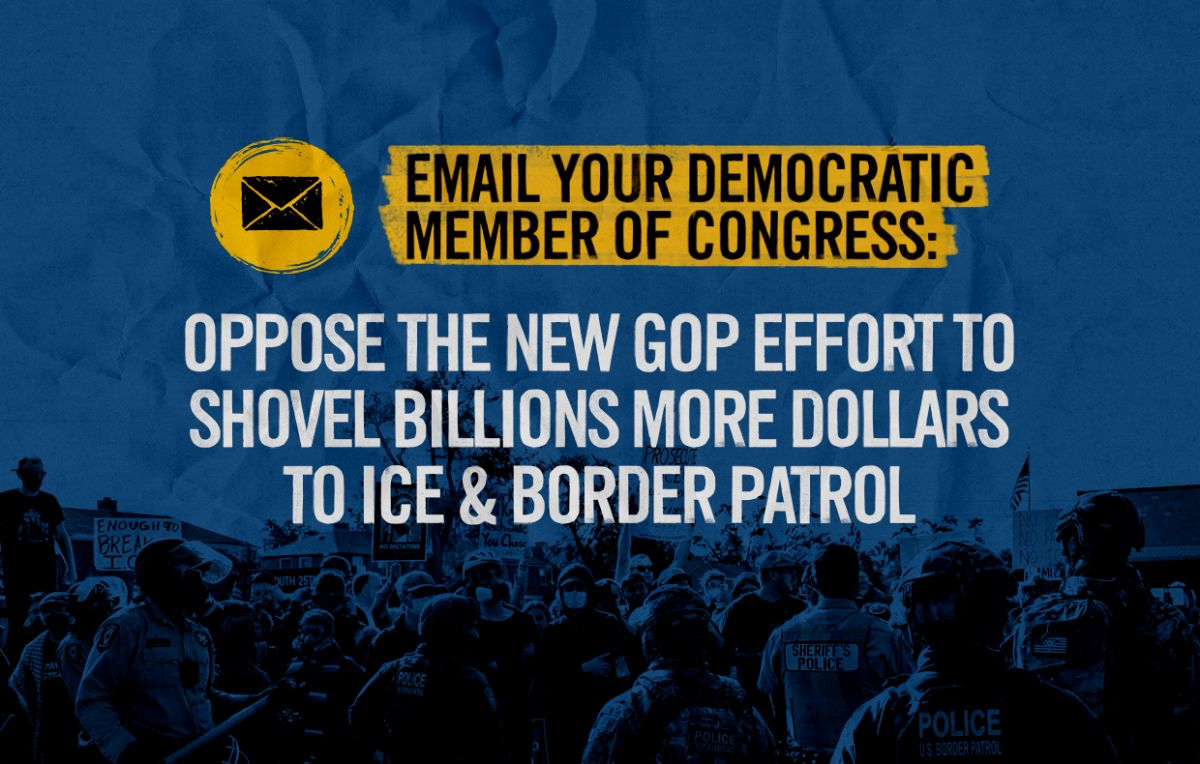 Indivisible and activists urge Democrats to block a GOP push to add billions to ICE and Border Patrol budgets.